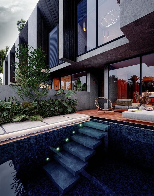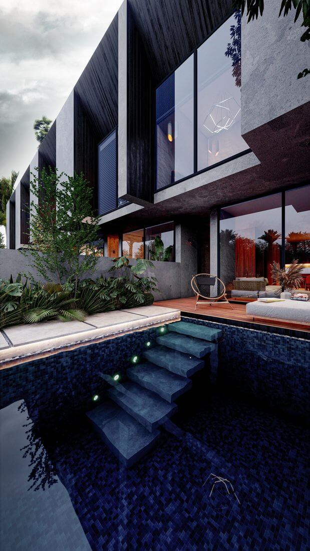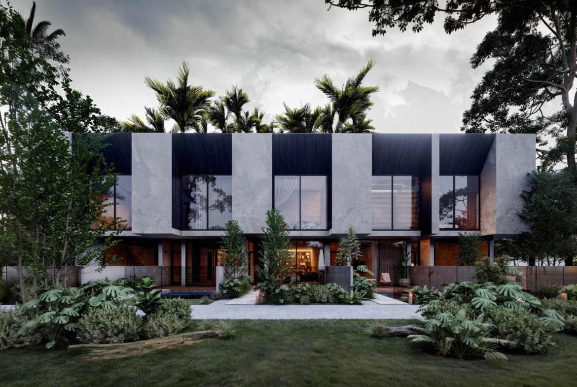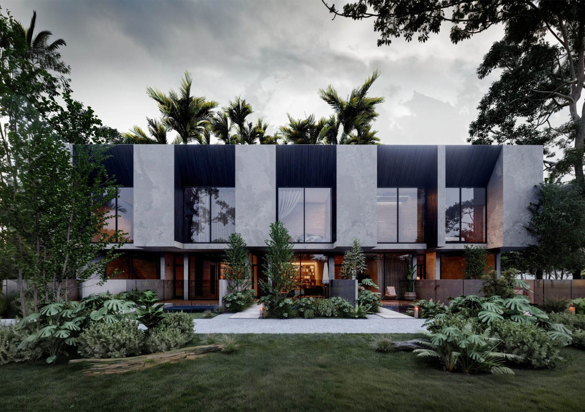 Ten contemporary townhomes in a luxury residential complex designed in an eye-catching architectural style that makes an impression.
