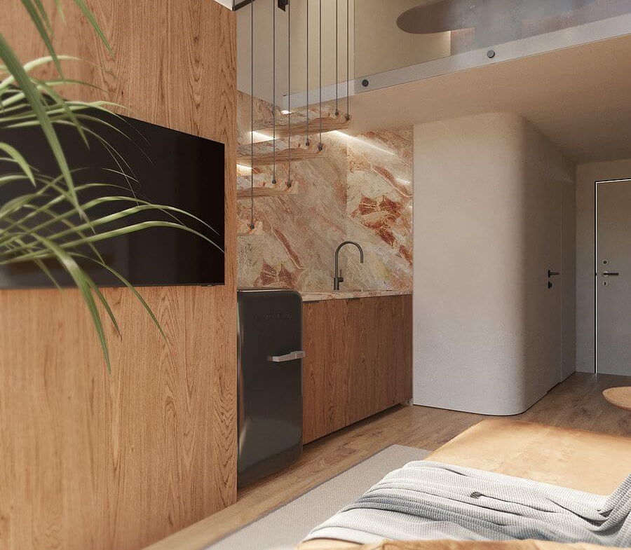 Двухуровневые апартаменты повышенной высоты — 29 м² + терраса 3 м² за 96 500 долларов США Двухуровневые апартаменты с террасой на 1 этаже — 35 м² + терраса 4 м² за 102 900 долларов США Высочайшая отделка и шикарный современный стиль гарантированы, поскольку каждая квартира тщательно спланирована и построена с использованием премиальных материалов европейских производителей.